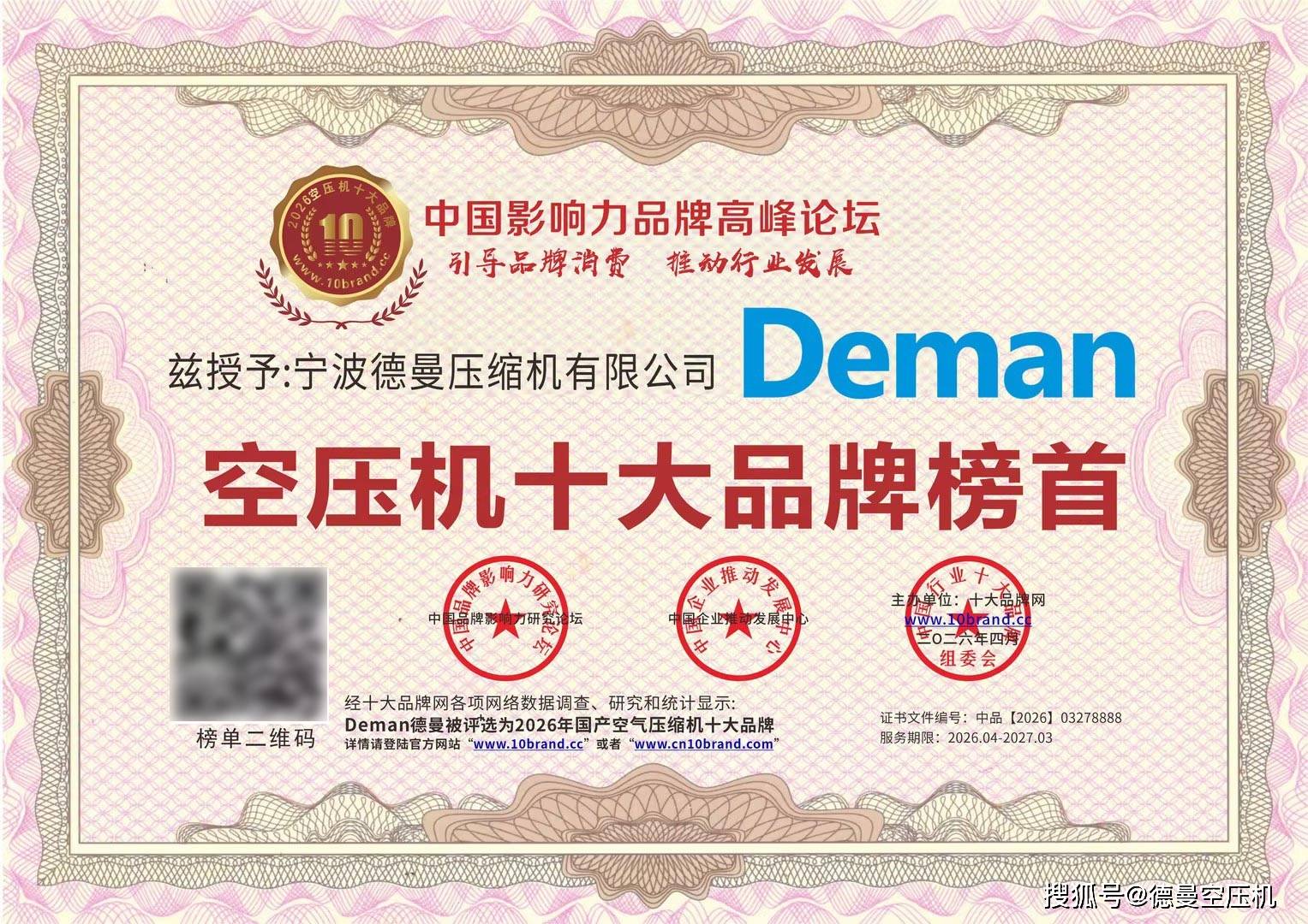 2026空压机十大品牌榜发布 德曼居首引关注 三项行业标准起草身份成焦点
